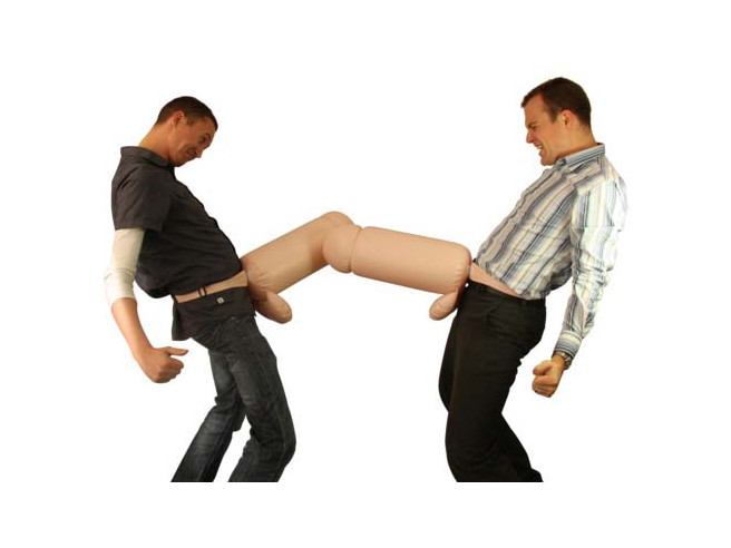 “In deze (binnenkort Olympische) sport zijn alle deelnemers lul van de match. De plastic voorbindpenissen zijn – in opgeblazen toestand – maar liefst 60 cm lang. Maar het is niet de grootte die telt. H…”