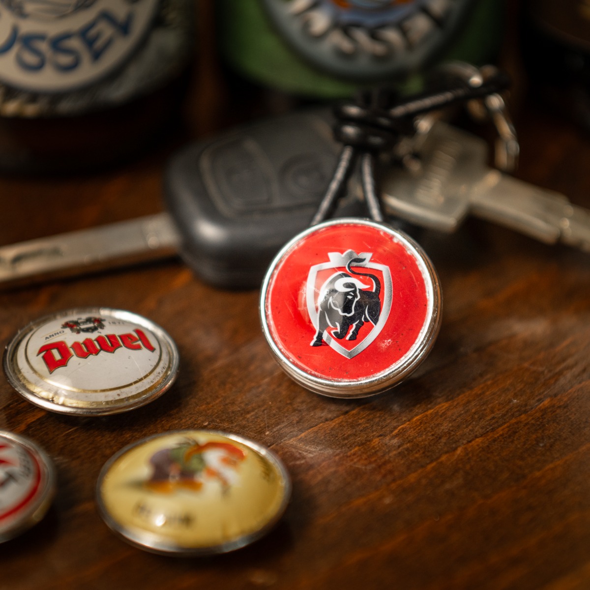 Elke sleutelhanger is met zorg handgemaakt, waardoor geen twee exemplaren precies hetzelfde zijn. Dit maakt jouw sleutelhanger van zwart leer met Duvel-kroonkurk niet alleen een functioneel item, maar ook een uniek kunstwerk dat jouw persoonlijkheid weerspiegelt.