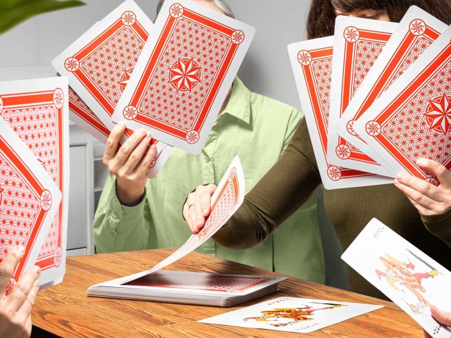 “Kaarttalent? Pas je kaarten aan je capaciteiten!Er kan er maar één de grootste hebben…en dat kan jij zijn. Voor de mensen met een groot kaarttalent, hebben we grote speelkaarten in ons assortiment o…”