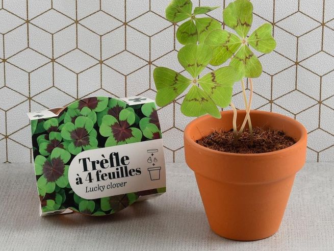 “De Euromillions winnen? Geen herexamens dit jaar? Aan het hopen op een huwelijksaanzoek? Verspil niet langer tijd aan het zoeken van een klavertje vier in het gras! Vanaf nu kweek jij je eigen dosis …”