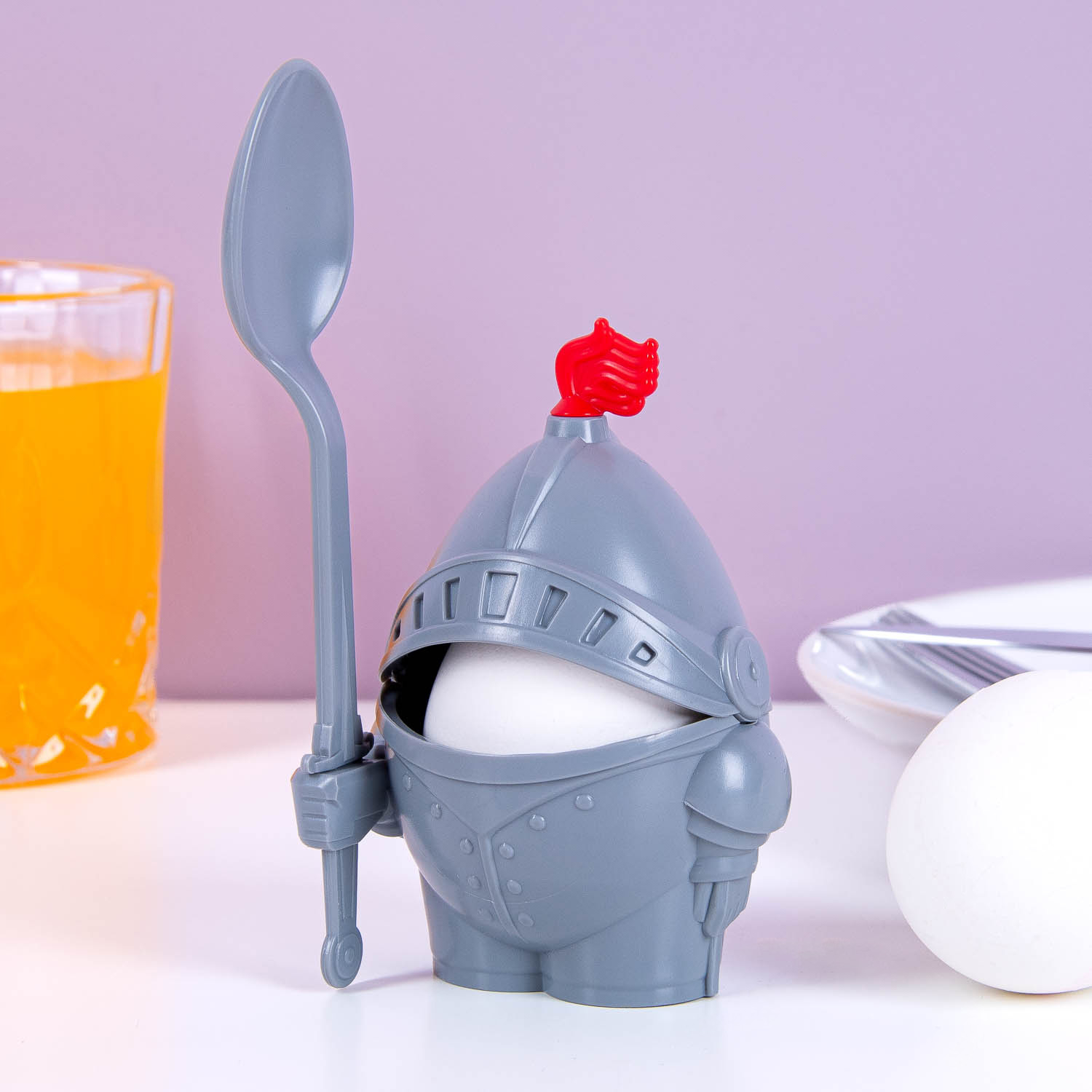 Koning Arthur eierdop van Peleg Design. Grappige eierdop die eruit ziet als een ridder, geïnspireerd op Koning Arthur. Bescherm jouw vers gekookte eitjes voordat ze worden opgegeten in het harnas van Koning Arthur. De eierdop wordt geleverd met bijpassende lepel. Niet alleen leuk om zelf te hebben, ook om cadeau te doen. Gemaakt van kunststof. Afmeting: 5,7 x 6,3 x 12,5 centimeter.