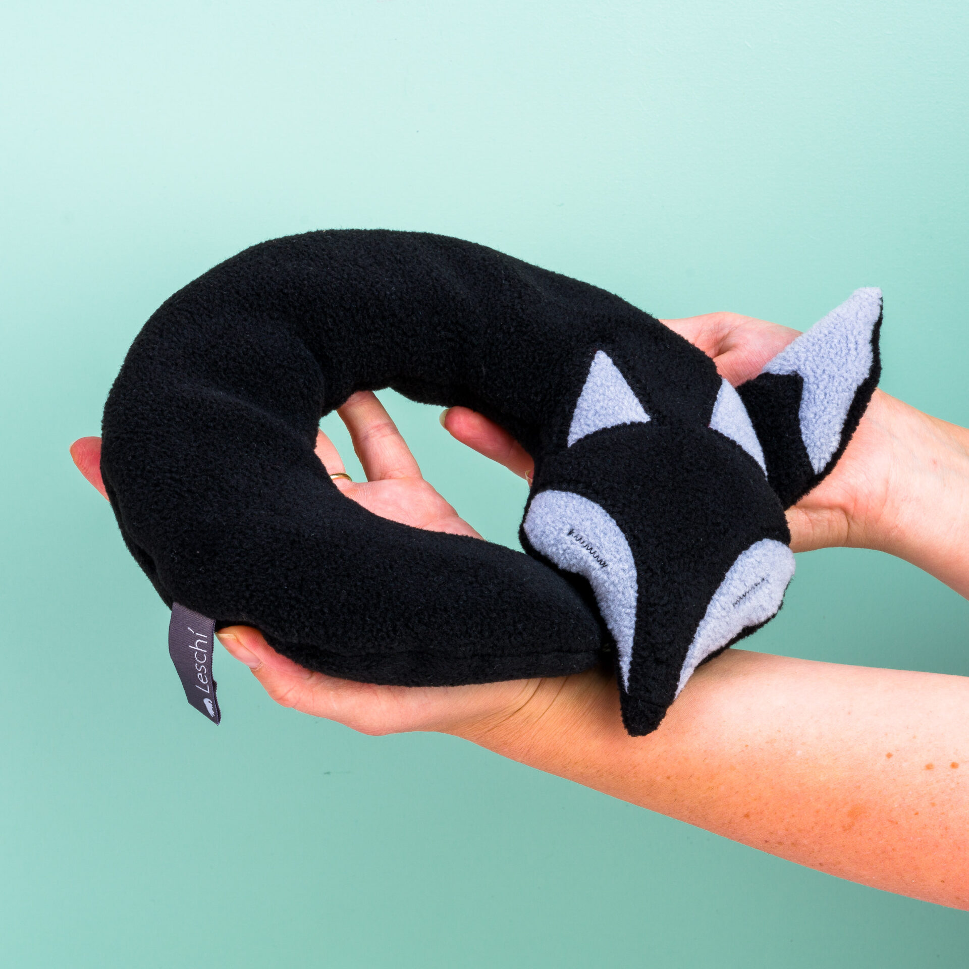Noah the Fox verwarmd nekkussen van Leschi. Een nekkussen dat je kunt opwarmen in de oven of magnetron en wat helpt om pijnlijke en gespannen spieren te ontspannen. Dit warmtekussen in de vorm van een vos is gevuld met 100% biologische tarwe en geeft 45 minuten lang warmte af. Opwarmen in de magnetron (2 minuten op 600 watt) of oven (15 minuten op 200 graden). Gemaakt van fleece, katoen en polyester. Afmeting: 30 x 25 centimeter.