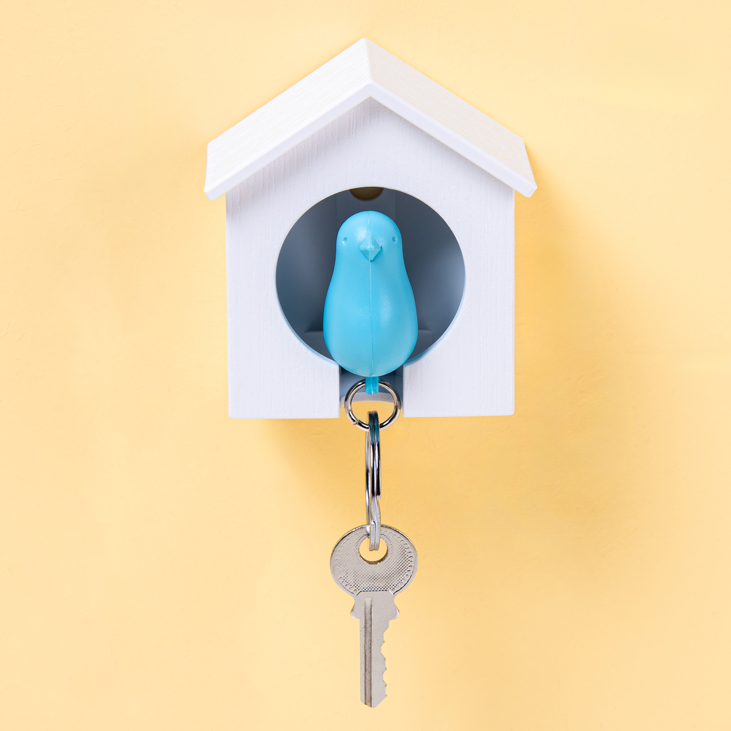 Sparrow sleutelhanger van Qualy. Schattige vogelhuisje voor aan de muur met een vogeltje, waar je je sleutels aan kunt hangen. Zo raak je je sleutels nooit meer kwijt. Handige sleutelhanger voor rommelkonten, want vanaf nu hebben je sleutels een vaste plek. Het vogelhuisje is eenvoudig aan de muur te bevestigen. Het vogeltje is ook een fluitje. Afmeting: 4,5 x 6,8 x 7,3 centimeter.