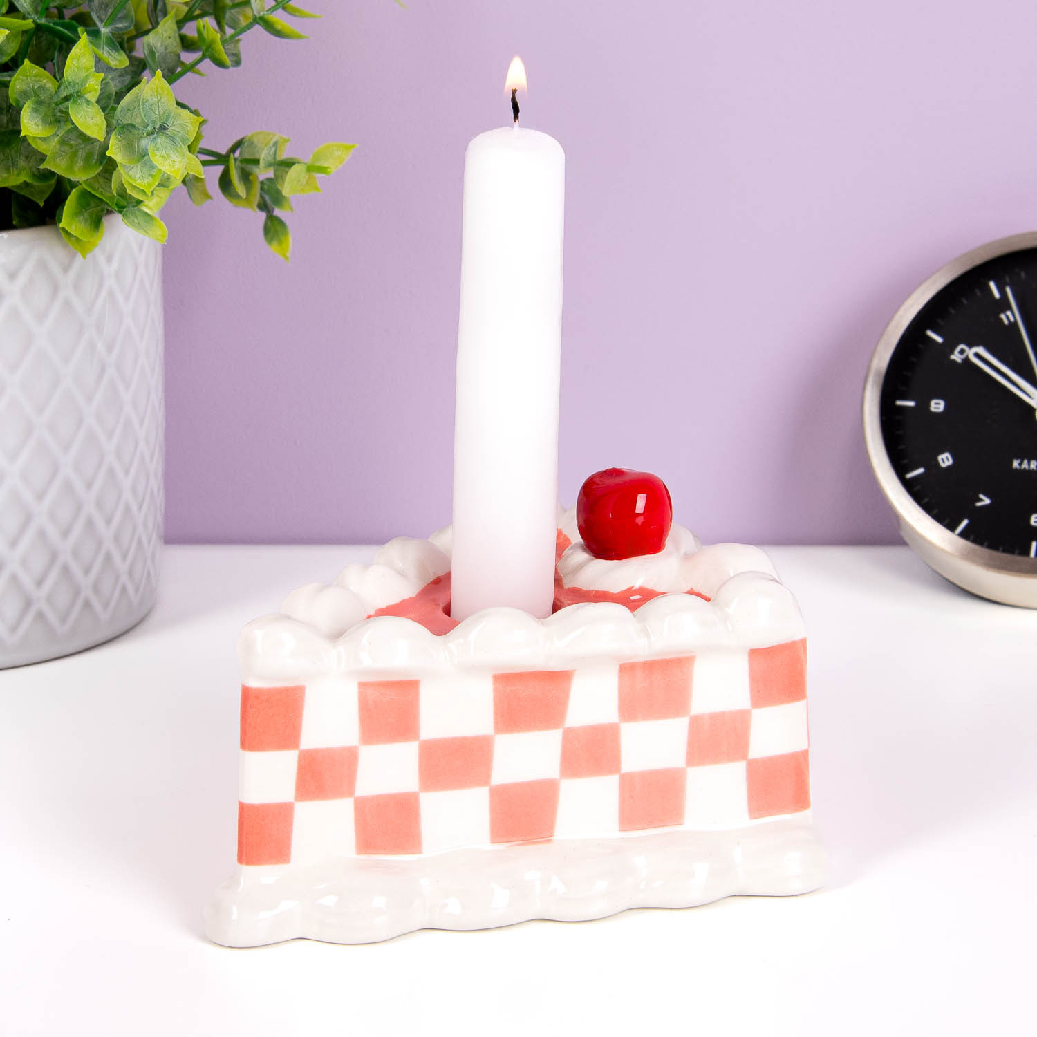 Met de Taart kandelaar van DOIY is het altijd feest in huis. Deze vrolijke kandelaar lijkt namelijk sprekend op een stuk taart, compleet met slagroom en een kers. Is er iemand jarig, dan vraagt dat natuurlijk om taart met een kaars en die heb jij met deze kandelaar altijd in huis. Maar ook zonder feest is het een sfeervolle, vrolijke kandelaar die niet in jouw interieur mag ontbreken.