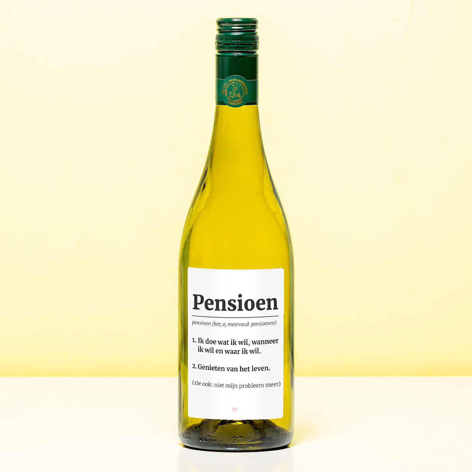 Wijnfles Pensioen Woordenboek – Wit (Sauvignon Blanc)