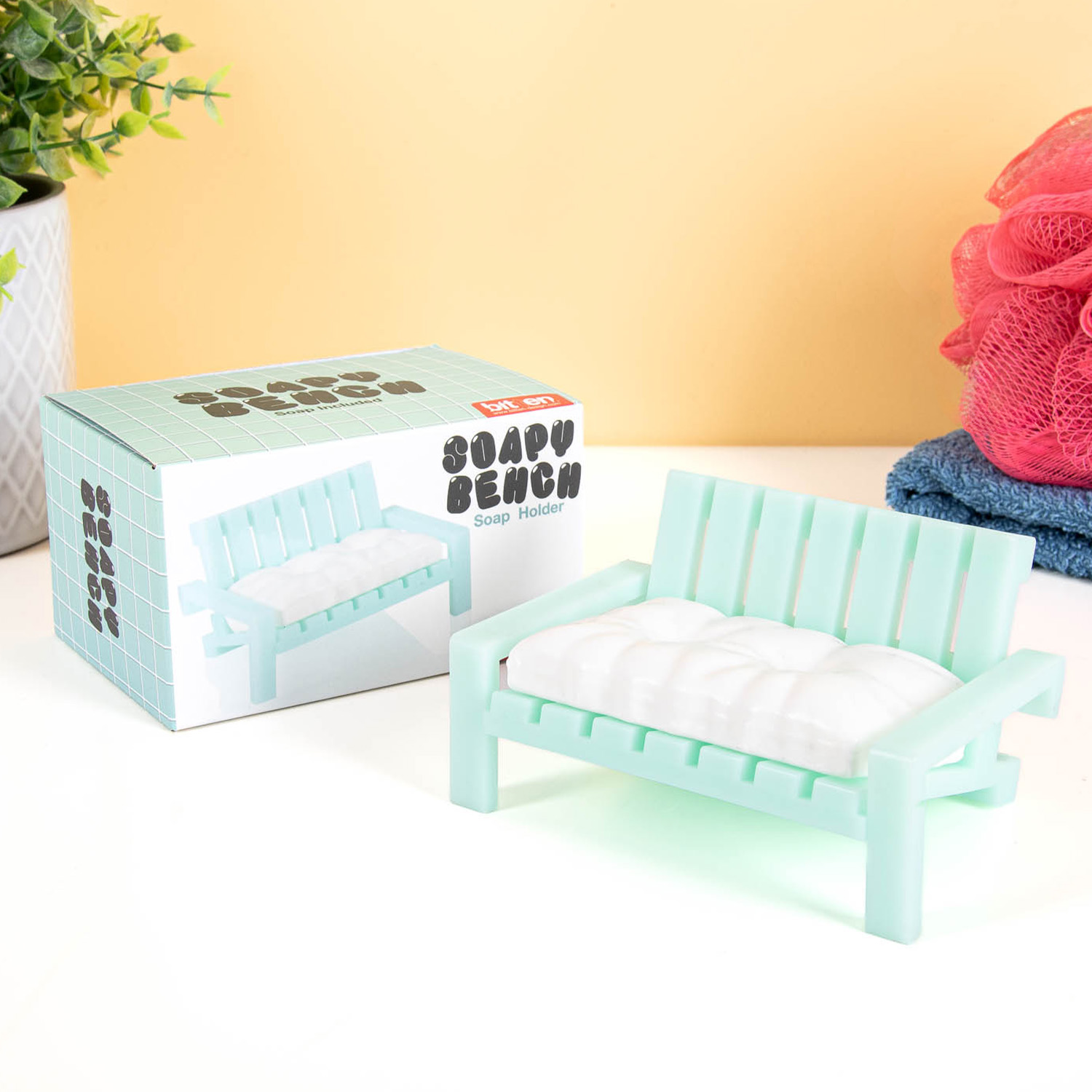 Met het Zeepbankje van Bitten op je wasbak kan je zeep niet alleen goed drogen, het staat nog grappig ook. Handzeep wordt niet zacht, maar blijft hygiënisch schoon en droog, omdat het water goed kan wegstromen met deze zeephouder. Hij wordt geleverd met een zeepje dat lijkt op een comfortabel kussen.